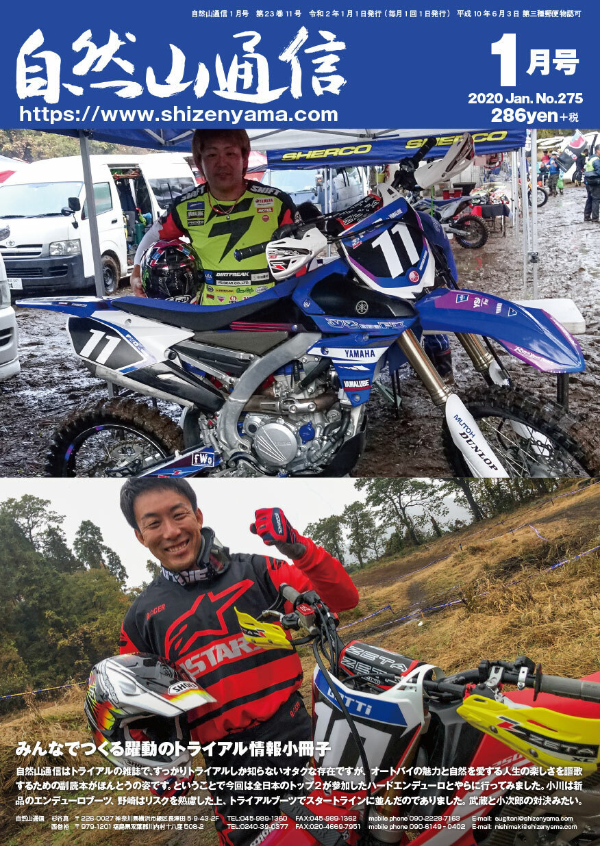 小川友幸、野崎史高ハードエンデューロ【G-NET】初出場・2019秋の陣G-NET R5・R6/2020 X-TRIAL R2フランス・トニー・ボウ、レンヌで2勝目/2019MFJ全日本トライアル全結果・MFJ非公認自然山通信オリジナル/笑っちゃうわ。大勢で第23回爆笑TRに参加した物語・三谷正次/連載第38回・私の日本から世界へ。いま思い返す87年のヨーロッパ・文イラスト黒山一郎/連載・出逢いのチカラ・寺田智恵子さん/MFJ MOTO AWARDS 2019トライアルライダー多数表彰されました!/2020全日本カレンダー@日本モーターサイクル協会より/堀内さんの置き土産@ヤマハ発動機のお知らせから/2019白井アドベンチャートライアル/シニアツアー、マスターズトライアル@FTJ/2019メッツカップ(マカベ)最終戦無事終了/私の何が変わった(?)爆笑大会@池田勝・メッツクラブ/全国全世界・選手権草大会ツートラスケジュール早見表/イベント情報掲示板/気になる情報掲示板・トライアル新製品情報&トライアルショップ最新情報!/トライアルイベント予定表/トライアルの軌跡(イベントリザルト)/◎B5サイズ・オールカラー・52ページ