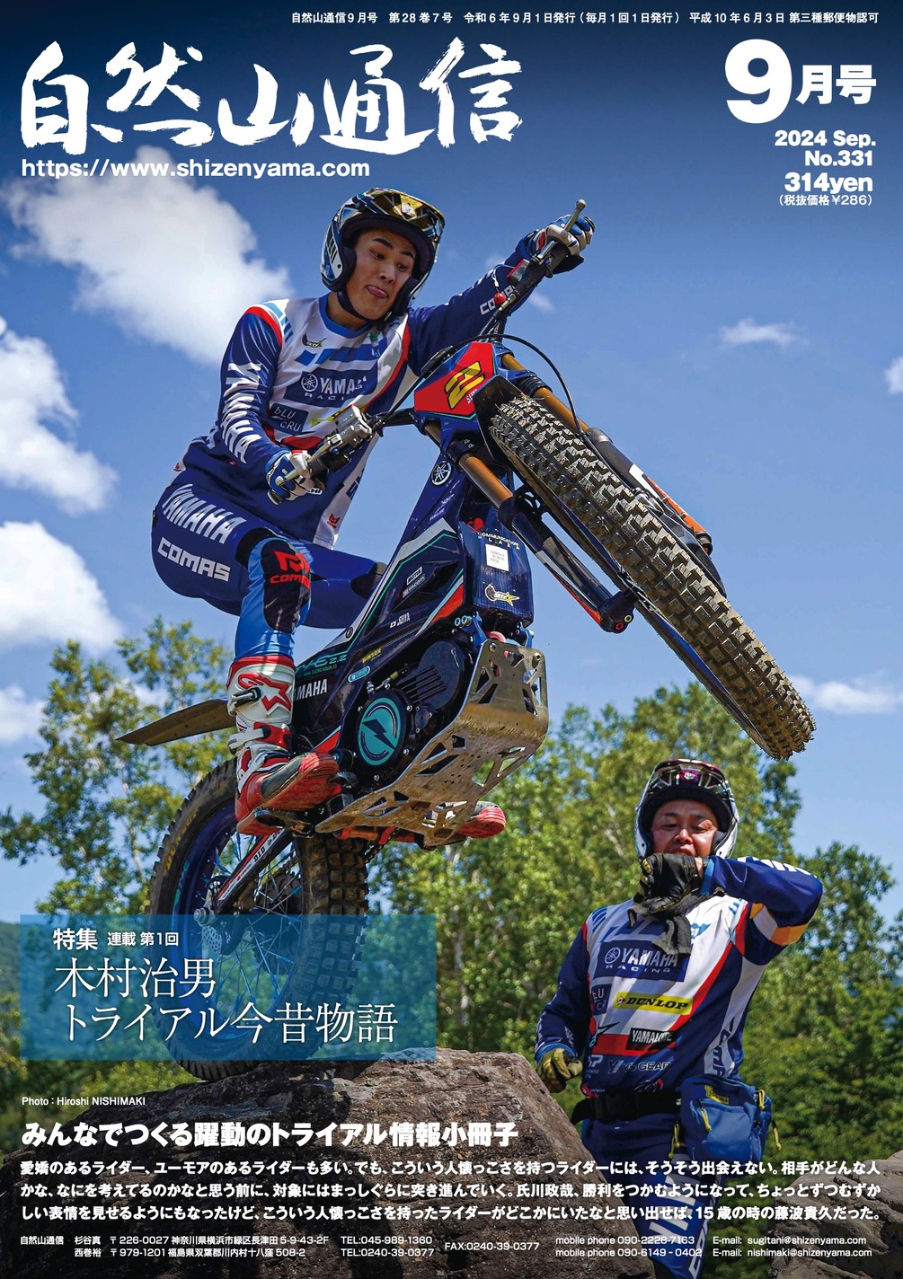 【特集】『木村治男トライアル今昔物語』連載・第1回/イタリアGP観戦記を読んで@徳田和良/沖縄トライアル大会第7戦沖縄トライアル協会@津嘉山正/極上の大会だった“奥山トライアル・フェスティバル”@鋤柄雅敏/オリンピックとフランスと・やぶにらみ自然山通信/アダム・ラガは何しに日本へ?・テレビ東京/最近のおじいさんたち@自然山通信ロータリークラブ/筋金入りのトライアルファン久美子おばあさんのお話・最終回/全国全世界・選手権草大会ツートラスケジュール早見表/イベント情報掲示板/トライアル新製品情報/トライアルイベント予定表/トライアルの軌跡(イベントリザルト)/B5サイズ・オールカラー・48ページ