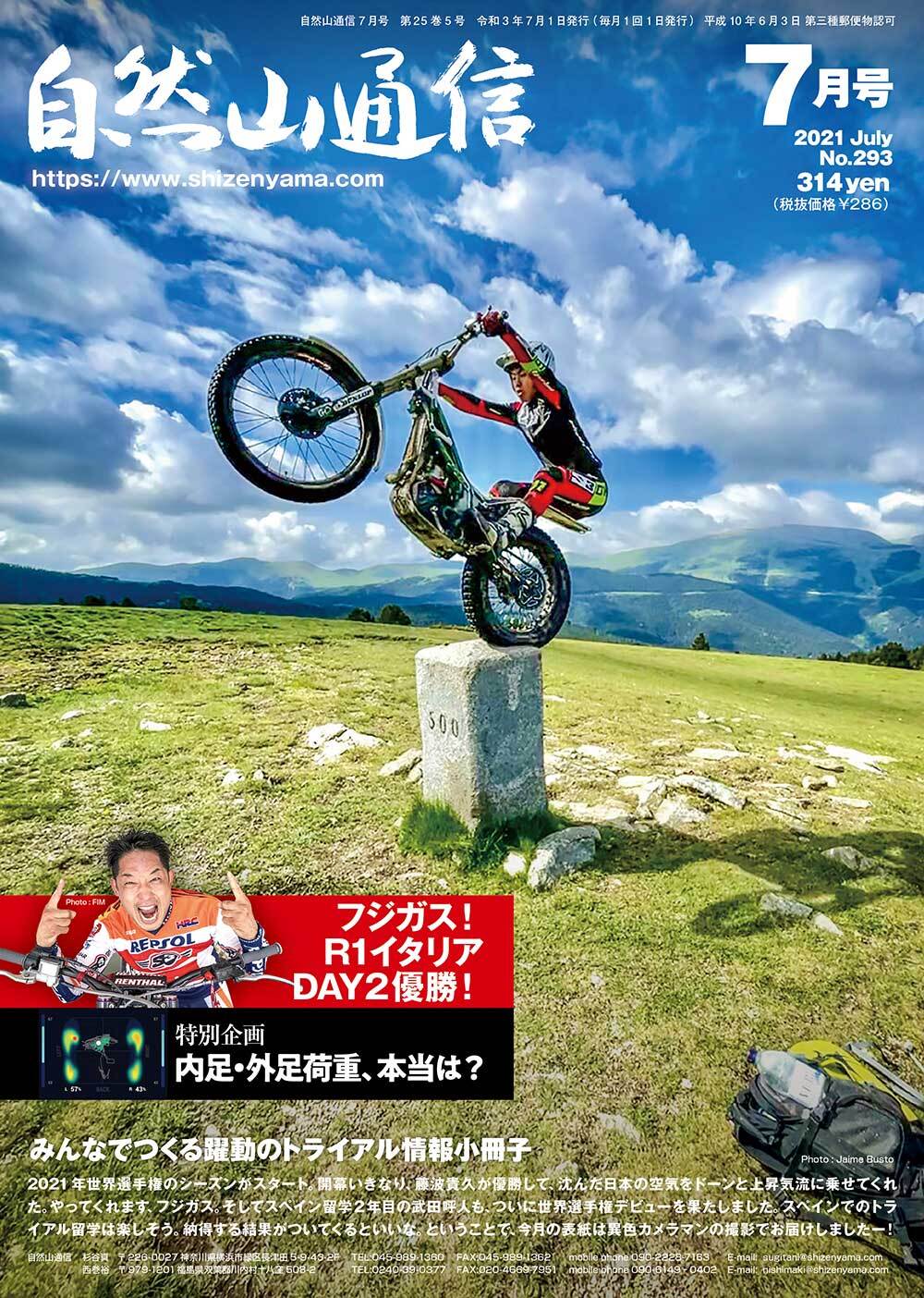 2021 FIMトライアル世界選手権R1イタリア・フジガス!R1イタリアDAY2勝利!神がかっていた、41歳のメモリアル。・ますますレベルアップする『TRIAL2』幅広い才能がぶつかり合う、試練の場。フル参戦の武田呼人はどう戦うか・カムバック、ライア・サンツ。エマ・ブリストと1勝1敗・ダンスの一歩リードの125/2021 VERTIGO COMBAT VERTICAL R3 125/250/300/TOPICS 全日本トライアル選手権R2関東大会・パーフェクト!小川友幸。圧勝で開幕2連勝・死角なし、小川友幸。表彰台は4人で争われた。・難関に体当たりの国際Aと神経戦のレディースと国際Bの勝負/【特別企画】内足・外足荷重、本当は?・足裏アクション可視化のシステム・内足or外足を意識しても、ステップにかかる荷重さはそれほど大きくない!?・重心のブレが大きかった、自然山通信ニシマキの場合。・自転車のダニエル。ペダルの荷重は、意外に左右ほぼ均等に近かった!・世界初!?www『ダニエル』可視化成功!重心移動とリヤブレーキタイミング。これがダニエルの分析結果だ!/私の日本から世界へ。いま思い返す87年のヨーロッパ・連載56回・文イラスト黒山一郎/筋金入りのトライアルファン・久美子おばあさんのお話/全日本中部と北海道延期日程決まる@MFJ/武田呼人は世界戦全戦に出場@武田呼人/全日本九州大会にスタッフで参加しました@高崎正隆/2021沖縄トライアル大会第4戦@沖縄トライアル協会広報/小川アタックツートラ今シーズンの「走行会」を終えて@遠山元雄/RTL300R予約販売のお知らせ@HRC(ホンダレーシング)/国全世界・選手権草大会ツートラスケジュール早見表/イベント情報掲示板/気になる情報掲示板・トライアル新製品情報&トライアルショップ最新情報!/トライアルイベント予定表/トライアルの軌跡(イベントリザルト)/B5サイズ・オールカラー・68ページ